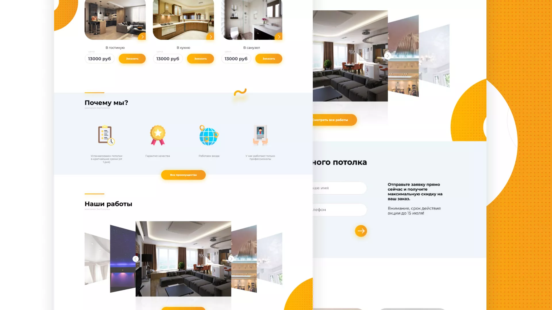 Вам нужна разработка сайта по натяжным потолкам в Мамоново? Специалисты компании «Мультзавод» готовы помочь! Мы предлагаем большой выбор уже готовых вариантов, а также можем создать и что-нибудь новое!